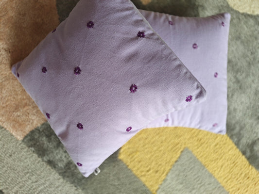 Soft Lavender Cushion Covers with Hand-Embroidered Tiny Flowers Set of 2