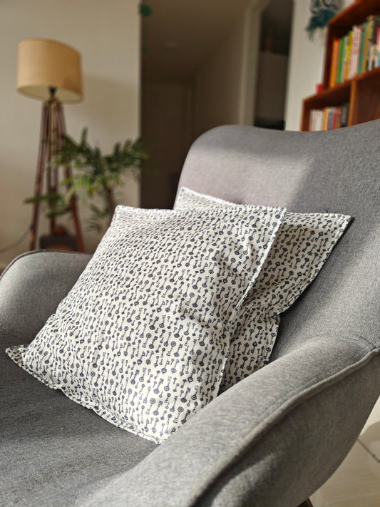 Vintage Black & White Key Print Self Border Cover Cover Set of 2