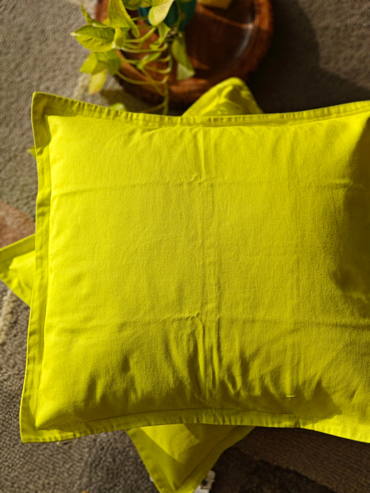 Vibrant Lime Green Self Border Cotton Cushion Covers Set of 2