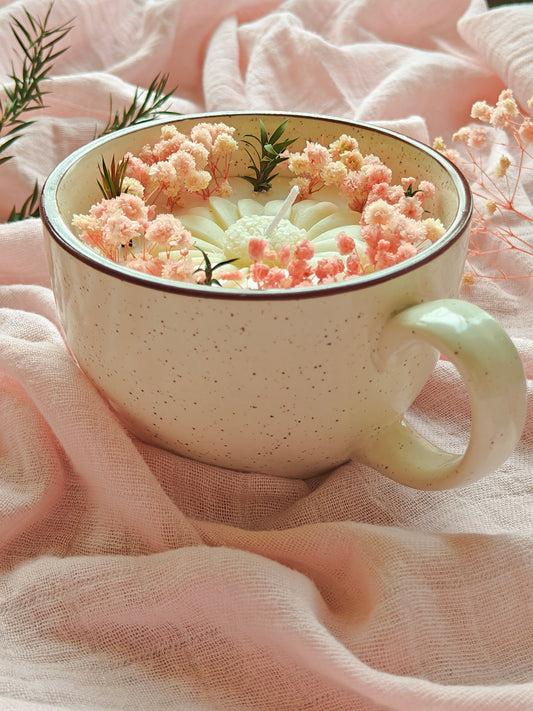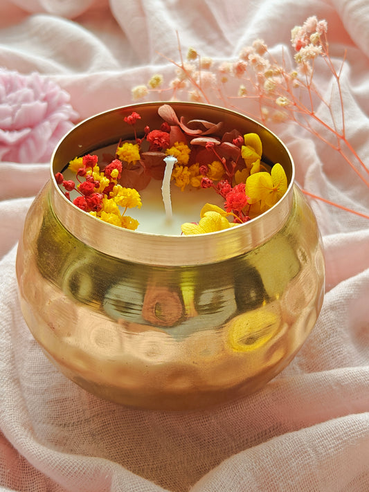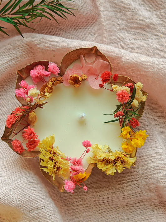 Colourful Handcrafted Soy Wax Tea Light with Soy Wax Floral Decor