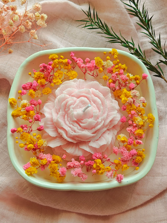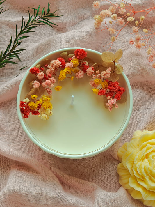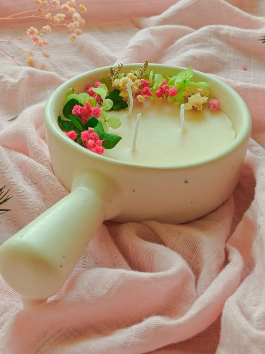 Handcrafted Hand poured Ceramic Pan Soy Wax Candle with Natural Dried Flowers