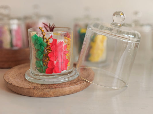 Handcrafted Handpoured Glass Bell Jar Soy Wax Candle with Natural Dried Flowers