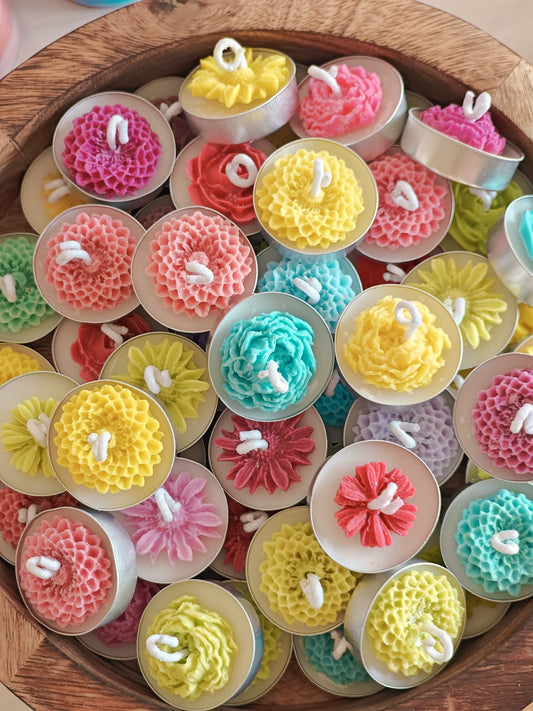 Colourful Handcrafted Soy Wax Tea Light with Soy Wax Floral Decor