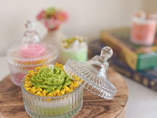 Handcrafted Hand Poured Crystal Glass Jar Glass Lid Soy Wax Candle with Natural Dried Flowers
