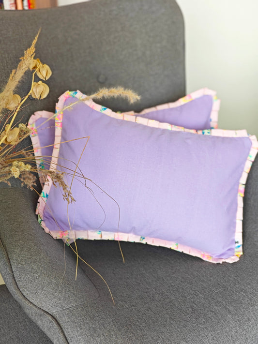 Lavender Elegance Cushion Cover Duo with Pastel Printed Box-Pleat Detailing Set of 2
