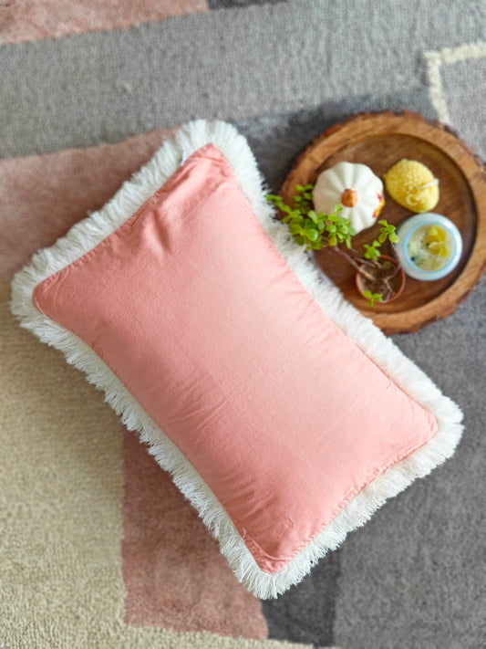 Pastel Peach Soft Textured Rectangle(12*18)Cushion Cover With White Fringe Detail Set of 2