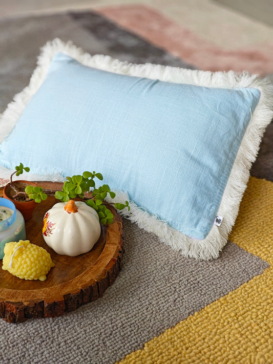 Pastel Blue Soft Textured Rectangle(12*18)Cushion Cover With White Fringe Detail Set of 2