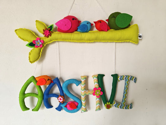 Handmade Felt Customised Name Garland with Birdhouse & Branch | Personalised Nursery Wall Hanging
