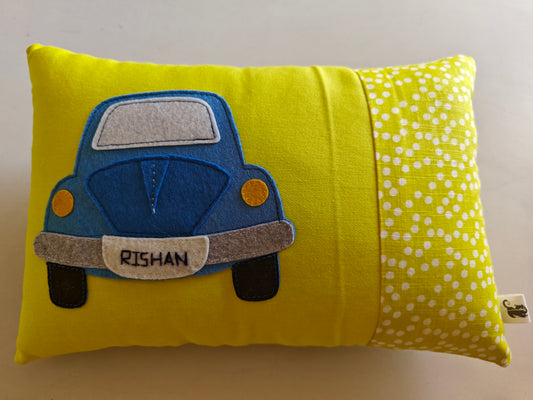 Customised Name Cushion with Felt Patch Design & Hand Embroidered Customised Name
