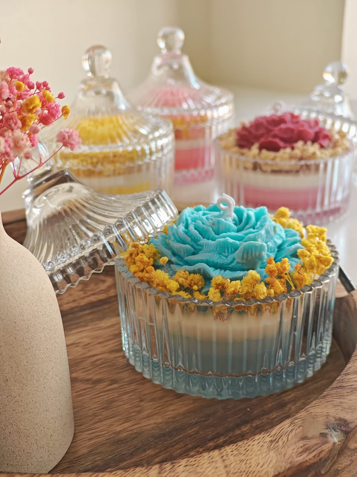 Disclaimer: Each candle is individually handcrafted, making every piece a unique work of art. The color, décor, and design elements — whether moulded details or dried flowers — vary from one candle to another. Random pieces will be dispatched based on availability, and the candle you receive may differ from the display image. This individuality is our signature — no two pieces are ever the same, and that’s what makes them special.